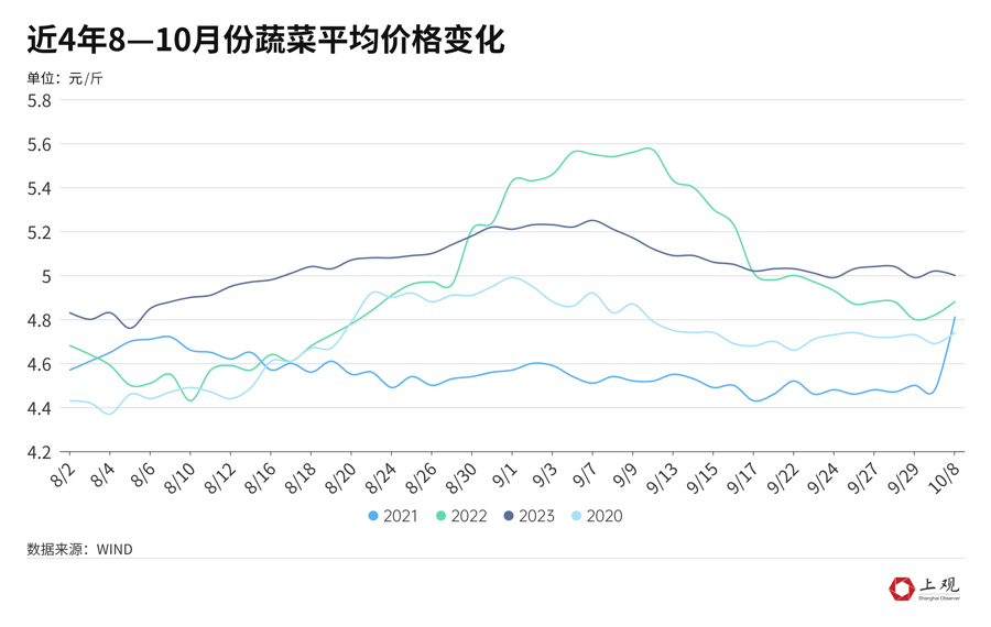 为了探寻蔬菜回落的具体时间,我们聚焦时间轴于8至10月份之间。