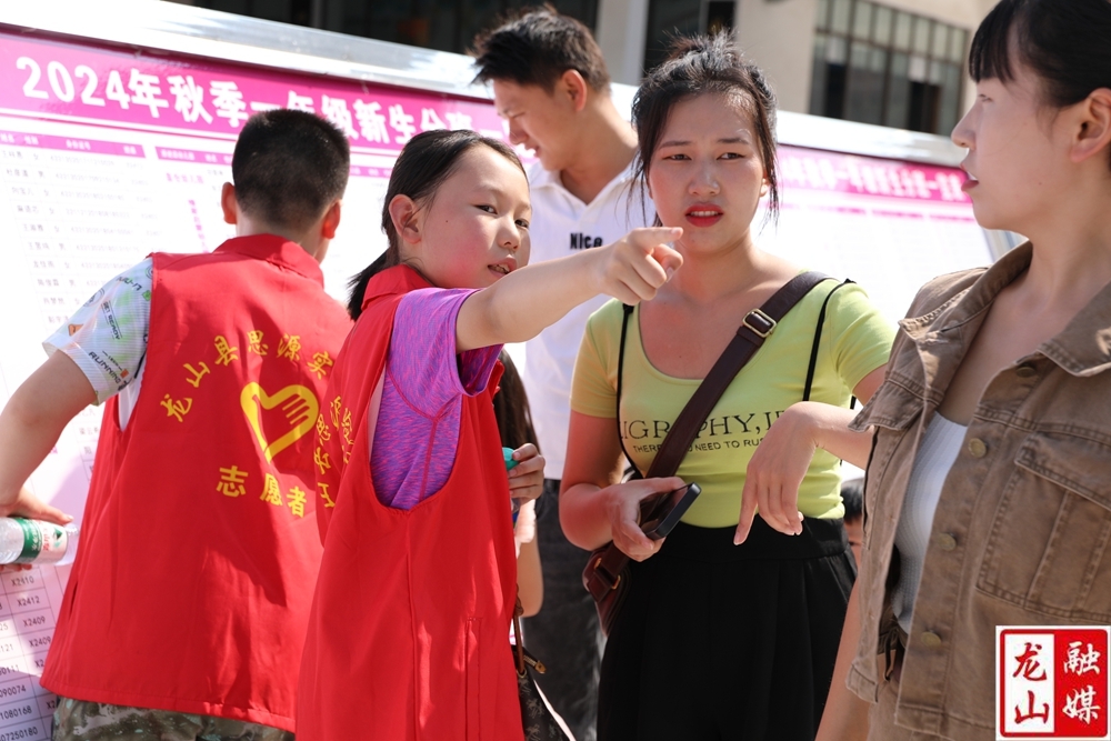 校园里,一群可爱的小志愿者们成为了一道亮丽的风景线。他们穿梭在人群中,积极地为新同学查找分班信息,热情地指路,引导新生寻找班级、熟悉校园环境。他们用自己的行动诠释着团结友爱和助人为乐的精神,为新同学们树立了良好的榜样。