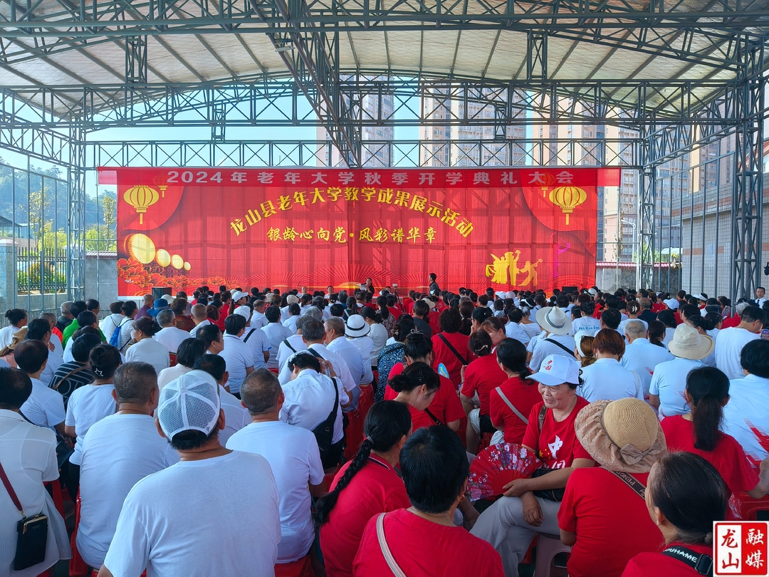 龙山县融媒体中心9月3日讯(记者 莫代银)9月2日,龙山县老年大学举办2024年秋季开学典礼暨“银龄心想党、风采普华章”教学成果展示活动。县委组织部、老年大学全体干部职工、学员1200余人参加开学典礼。