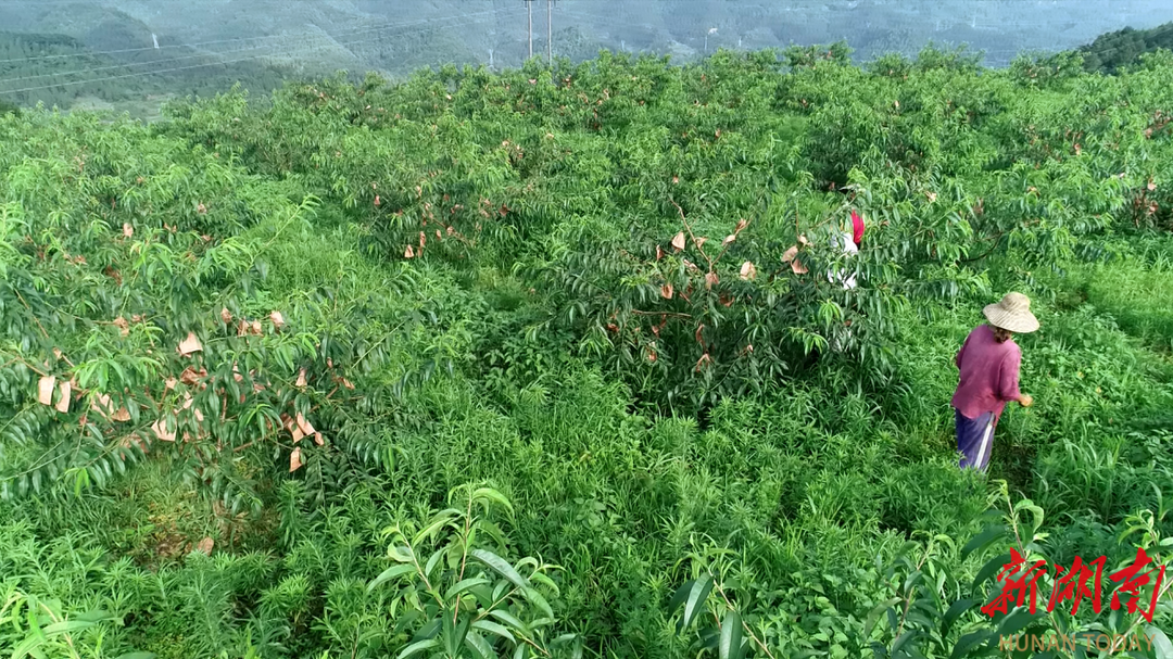 跟随镇上向导,沿着新修的产业路蜿蜒而上,记者来到了支家村国成黄桃种植专业合作社种植基地,只见200多亩黄桃已压满枝头,不少采摘工人正在采摘。记者摘下一颗,咬上一口,果香四溢,又脆又甜。