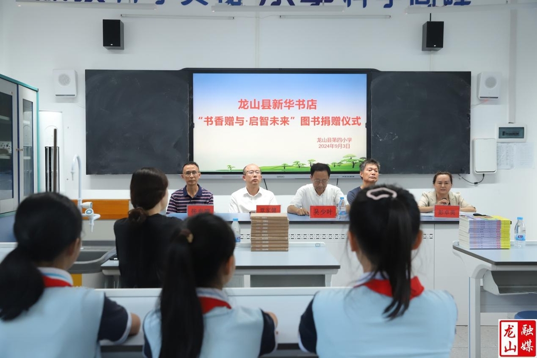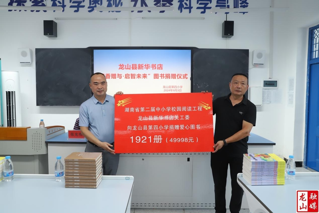 龙山县融媒体中心9月3日讯(记者 莫代银 通讯员 雷丽华 彭婷)9月3日,县委组织部、县关工委及县新华书店负责人来到县第四小学,开展“书香赠与·启智未来”图书捐赠活动。