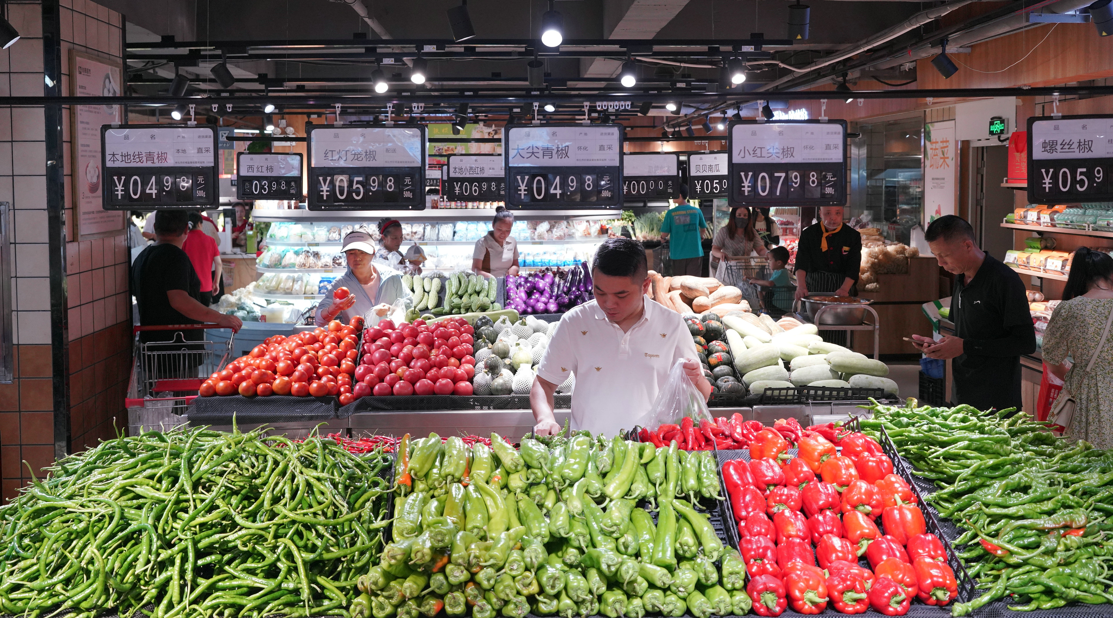 顾客在湖南省怀化市通道侗族自治县一家生活超市选购蔬菜。(吴三东摄 新华社发)