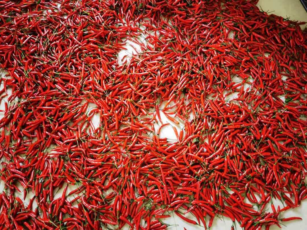 百型村的山头,火红的朝天椒生长正旺,采摘完一批,新的一批又已火红;