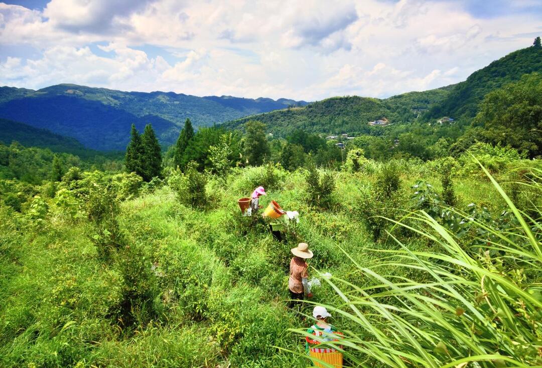 万龙村的莓茶基地,已采摘过的茶树重新茂盛起来,拼命地吸收着山间的阳光雨露;