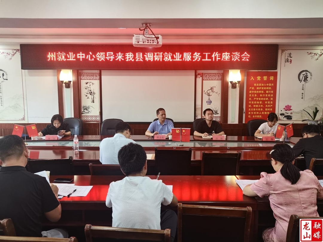 龙山县融媒体中心9月5日讯(通讯员 黄红 田明坤 )9月4日,州就业服务中心主任陈志忠一行来县调研指导就业服务工作。