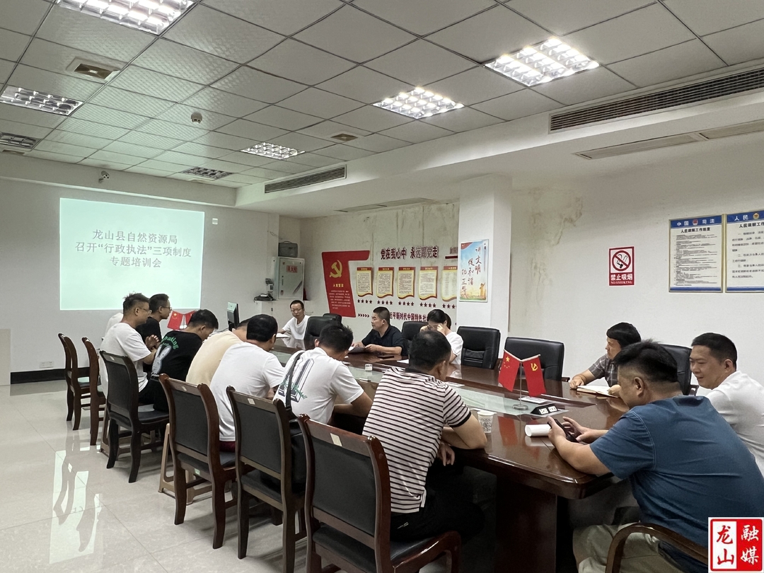 龙山县融媒体中心9月5日讯(通讯员  杜京 张鹏飞)9月5日,县自然资源局组织全体行政执法人员、法制审核人员开展行政执法“三项制度”专题培训会。