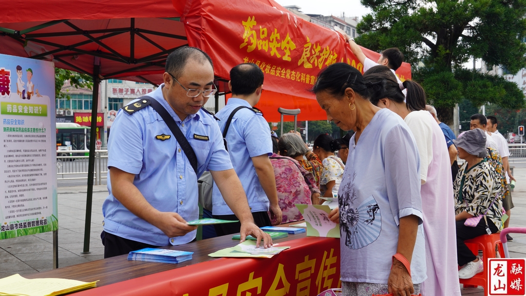 龙山县融媒体中心9月6日讯(记者 马菲)9月6日,县市场监督管理局在世纪广场开展了以“药品安全 良法护航”为主题的“2024年全国药品安全宣传周”活动。