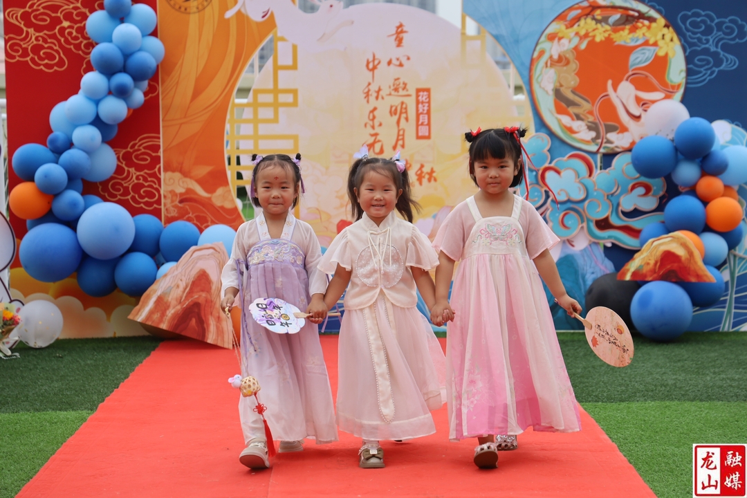 龙山县融媒体中心9月14日讯(通讯员 彭绪芬 常捷 田玉婷 )9月14日上午,第一幼儿园举办了一场别具一格的“中秋汉服文化走秀”主题活动,孩子们身着各式传统汉服,穿梭于历史与现实之间,不仅为幼儿园增添了浓厚的节日氛围,更让中华优秀传统文化在幼小心灵中绽放光彩。