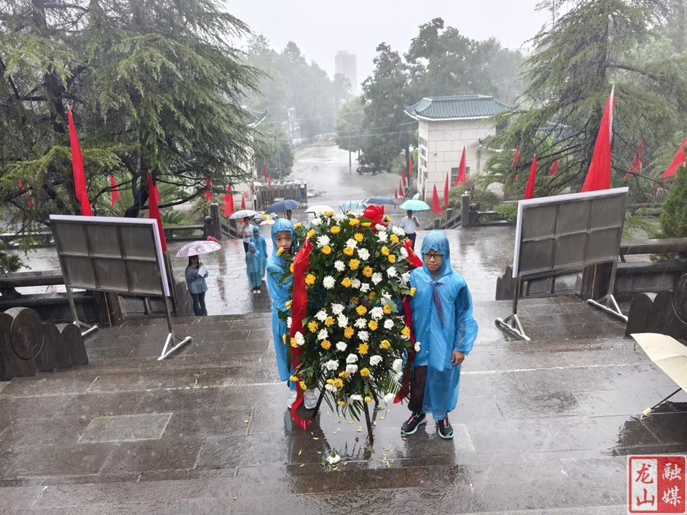 活动伊始,师生们在雨中面向革命烈士纪念碑静默肃立,师生们共唱中华人民共和国国歌,用嘹亮的歌声表达对英烈的崇敬。随后,师生们为革命烈士默哀,现场气氛庄严肃穆。