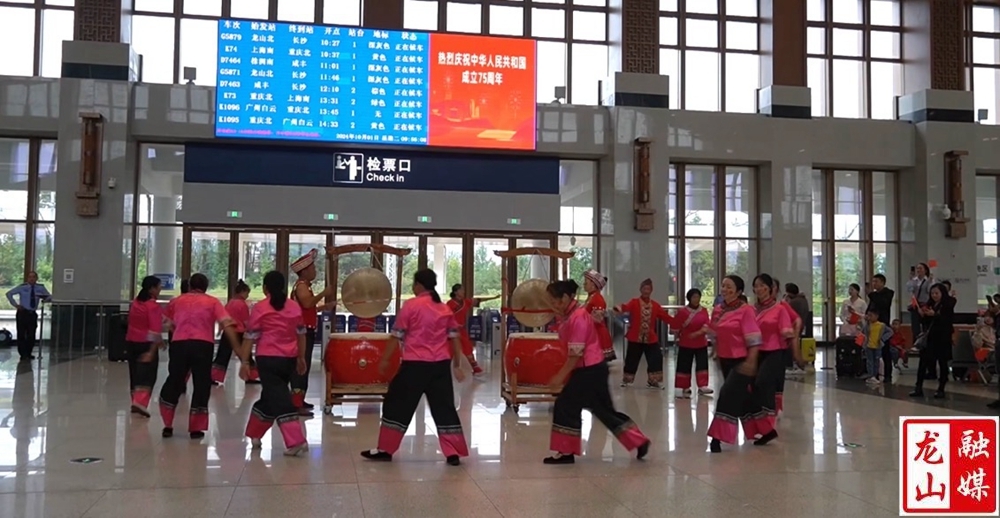 龙山县融媒体中心10月3日讯(记者 马菲)10月1日,龙山北站为旅客带来了精彩纷呈的快闪节目表演,庆祝中华人民共和国成立75周年,表达对祖国的热爱和美好祝愿。