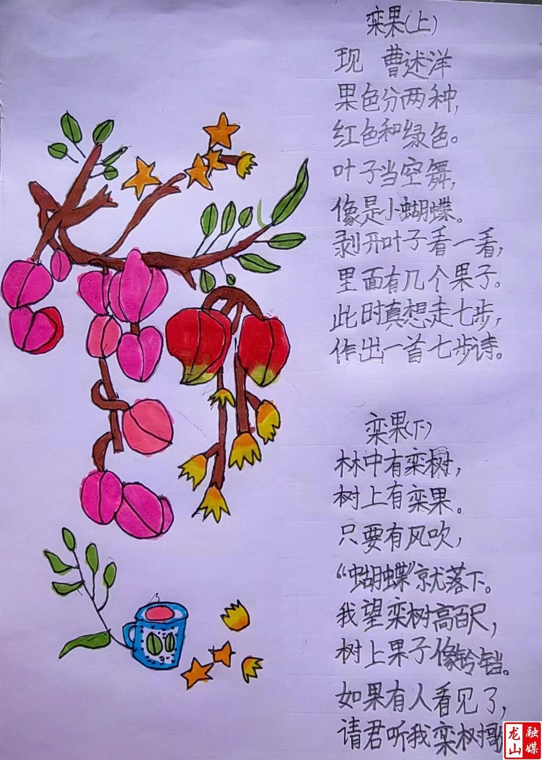 10月份以来,在“小学生观察栾树”自然课堂教学工作时,老师详细介绍栾树的特点习性、讲解校园自然环境,设置讲解重点,引导小学生的自主观察思考。课堂教学中,老师积极引导小学生表述“自己眼中的栾树”,通过仔细观察树干、树皮、纹理、花朵、果实、昆虫等细节,小学生写下了“栾树的叶子有不同的颜色,就像一幅美丽的画。我要把它画下来,也写进我的诗里。”“今天我认识了栾树,它真的好漂亮啊!红色的果子像小太阳一样,我好喜欢它。”等文字,还将观察感受用图画、手工记录了下来。