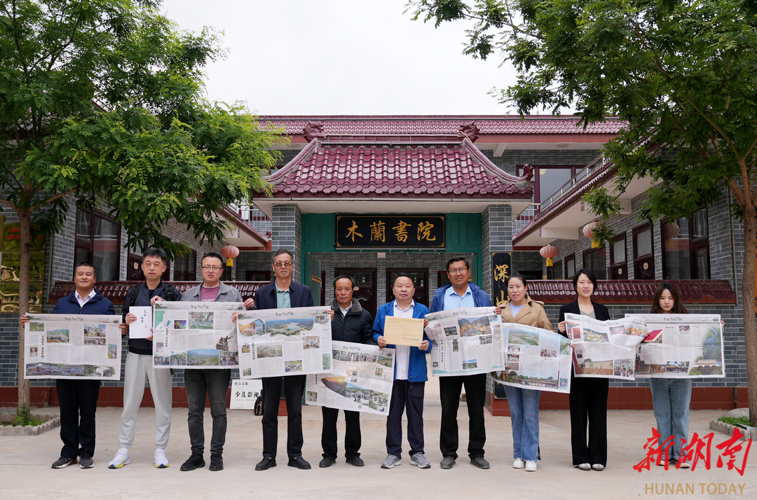 6月4日,湖南日报全媒体记者与宁夏回族自治区固原市西吉县的作家们在木兰书院前合影留念。