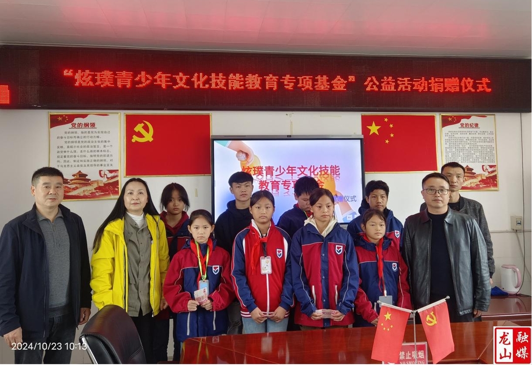 龙山县融媒体中心10月23日讯(通讯员 吴湘群 向子轩 向婷)10月23日,上海市炫璞青少年文化技能教育专项基金爱心人士在龙山县文旅局的组织下,走进靛房学校开展公益活动。活动现场,爱心人士向靛学校8名家庭困难、品学兼优的学生每人捐资500元,共4000元整,为孩子们送去温暖。