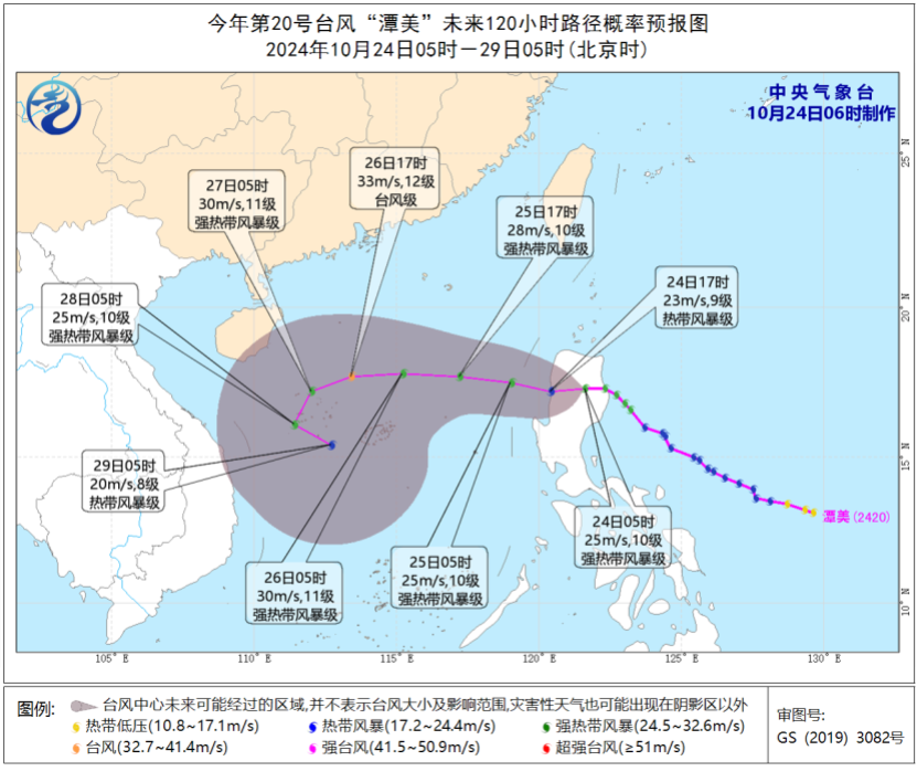今年第20号台风“潭美”已于今天(24日)凌晨1点钟前后在菲律宾吕宋岛东北部沿海登陆,登陆时中心附近最大风力有10级(25米/秒,强热带风暴级)。