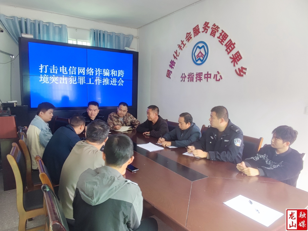 龙山县融媒体中心10月24日讯(通讯员 谭中杰)“不断提升全乡反诈意识,全面构建以防为先、预防为主的防范电信网络诈骗理念。”10月24日,咱果乡开展打击电信网络诈骗工作推进会,咱果乡平安办工作人员、司法所、村辅警等参会。