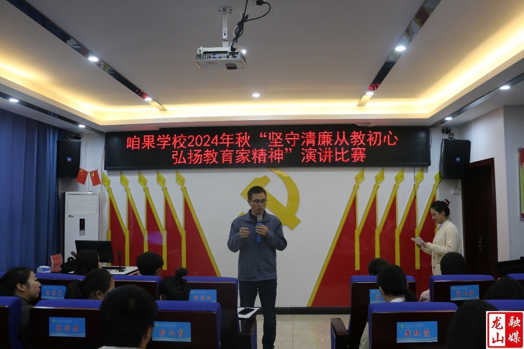 龙山县融媒体中心10月24日讯(通讯员 彭凡育 向凌宇)“我愿以我灯一盏,守护千千万万盏。”10月24日,咱果乡九年制学校开展“坚守清廉从教初心  弘扬教育家精神”演讲比赛。
