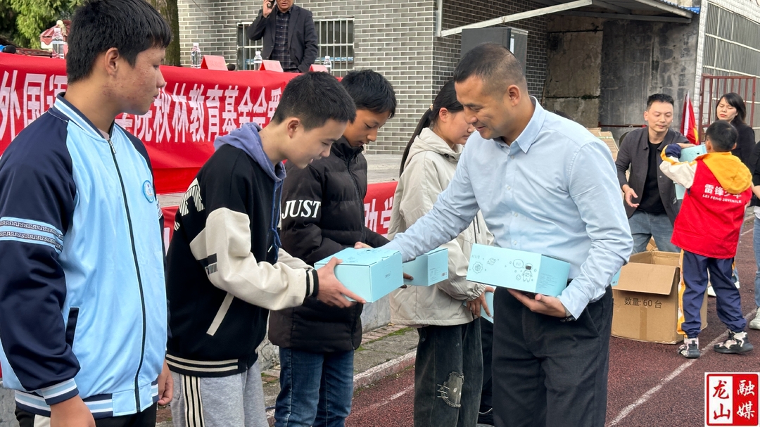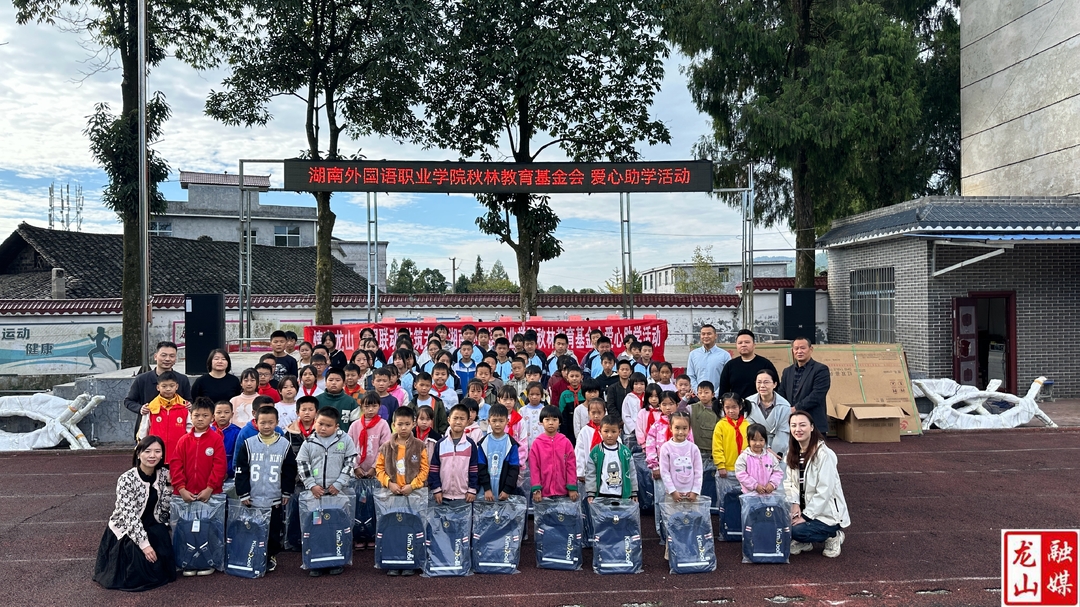 龙山县融媒体中心10月25日讯(通讯员 刘金坤)10月25日上午,湖南外国语职业学院秋林教育基金会一行到农车镇九年制学校开展“情牵龙山 梦想联动 共筑未来”爱心助学活动,湖南外国语职业学院、秋林教育基金会、省教育厅驻村工作队相关负责人及该校全体师生参加捐赠仪式。