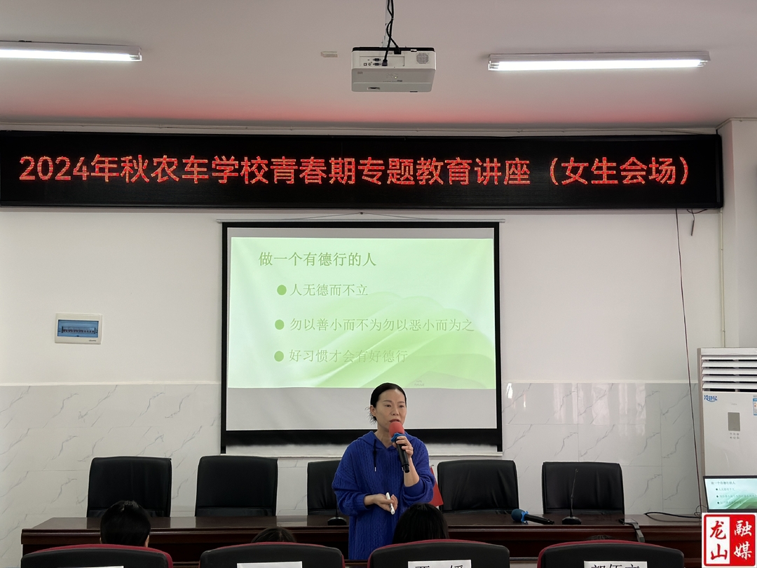 龙山县融媒体中心10月31日讯(通讯员 韩莉) 10月30日,农车学校为7至9年级的男女生分别举办了一场青春期专题教育讲座。两位主讲人针对青春期可能出现的早恋、厌学、欺凌、自残等问题,与同学们进行了深入的探讨,帮助他们全面了解青春期不良习惯的危害。