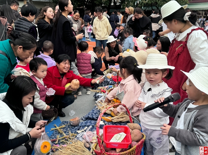 活动现场,摊位上摆满了孩子们自己收割回来的丰硕果实以及亲手制作的稻草人、萝卜干、饭团、豆浆、爆米花等,操场上人声沸腾,热闹非凡。“老板”和“顾客”的欢笑声、叫卖声和讨价声此起彼伏,汇成了欢乐的集市交响曲。