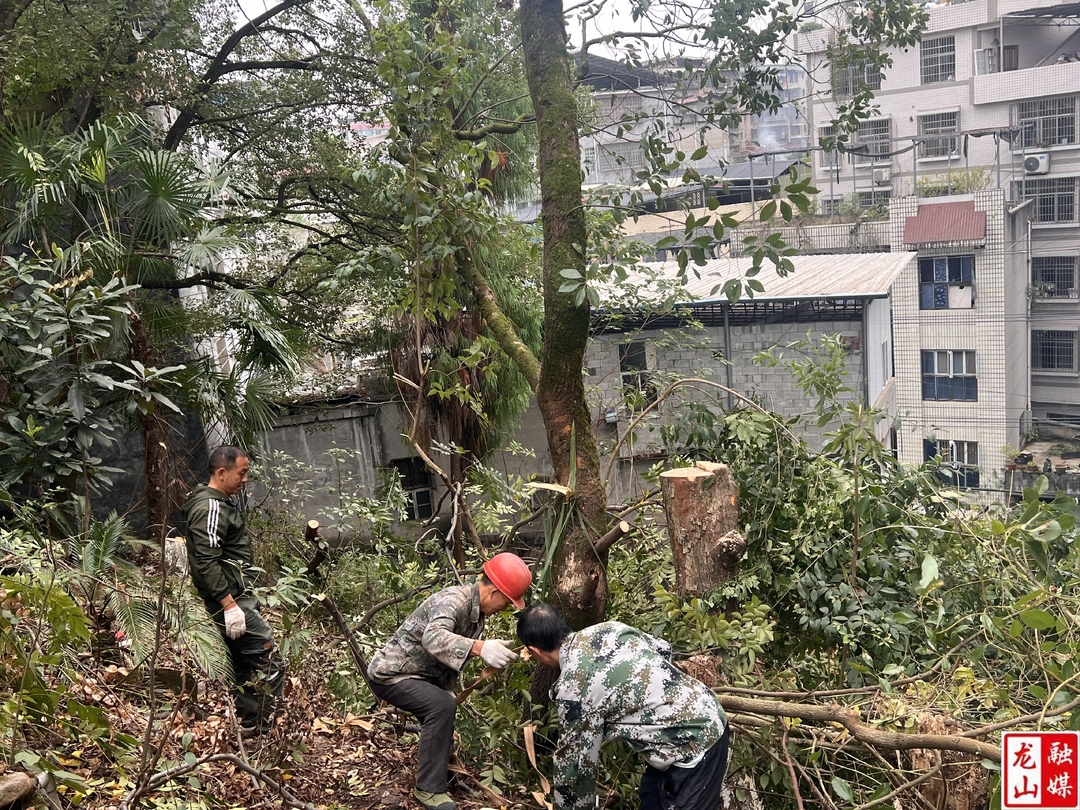 龙山县融媒体中心11月5日讯(通讯员 彭文娟 向水清)近日,龙山县第六小学接到周边住户代表反映,学校围墙边树木枝繁叶茂,伸至房屋顶部,存在安全风险。接到反映后,学校高度重视,迅速行动,于11月3日聘请专业施工队进场作业,对树木进行安全、有效的修剪。