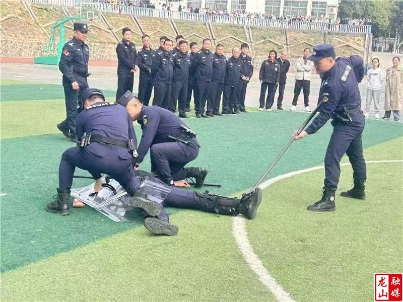 龙山县融媒体中心11月8日讯(通讯员 李乒乒 胡兵林)11月7日,红岩溪镇初级中学邀请龙山特警、红岩派出所干警为学校安保人员和教师开展反恐防暴安全培训和演练。