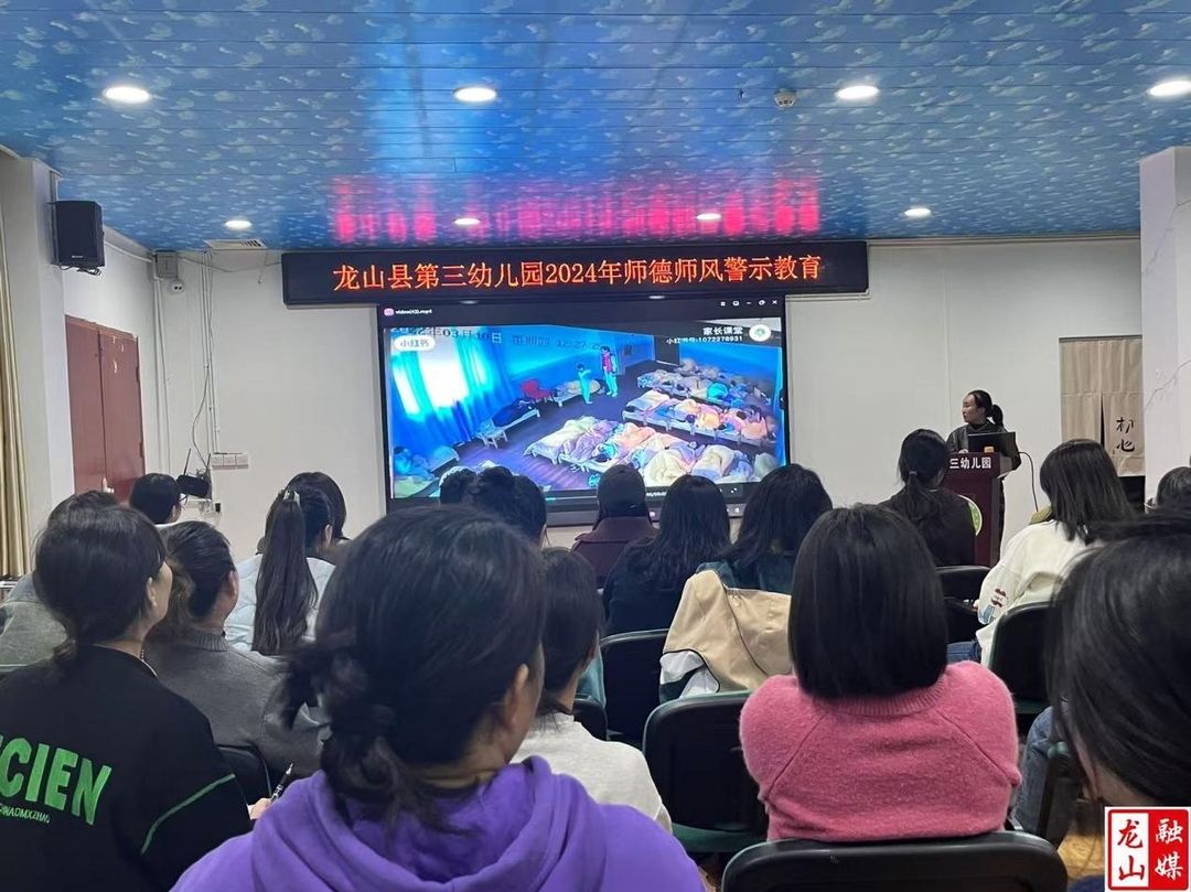 11月12日,龙山县第三幼儿园开展了师德师风警示教育学习活动。活动通过深入学习和反思,引导教师坚守教育初心,强化教育底线,规范从教行为,共同营造风清气正的育人环境。