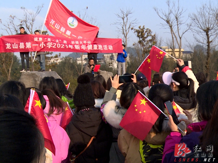 龙山县融媒体中心1月4日讯(记者 吴开准)1月1日,龙山县第一小学的200名教师来到果利河畔,手舞五星红旗,齐唱我和我的祖国,并沿太平山绿道,用健康跑的方式庆祝元旦佳节。