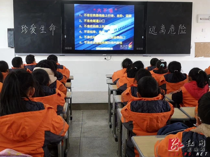 龙山县融媒体中心1月14日讯(通讯员 张光禹 李小倩)1月12日下午,龙山县第一芙蓉学校开展“知路·爱路·护路”安全专题教育活动。活动利用电子显示屏在全校进行宣传,组织师生们学习《铁路安全管理条例》等法律法规,让大家知晓铁路安全常识、爱路护路典型事例等,并下发学习了《致家长朋友的一封信》。