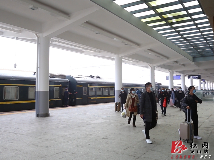 因为晚点,上海南到重庆北的K74次列车12点12分缓缓到站,乘客有序来到出站口,在铁路民警、车站工作人员和志愿者的引导下,纷纷拿出健康卡和行程二维码,经过测体温后有序从出站口出站。据了解,为了确实做好春运工作,车站积极落实广铁集团“平安春运、有序春运、温馨春运、让旅客体验更美好”的工作目标,根据龙山前往广州务工人员众多,积极向上争取运能,春运期间加开K6632次列车,龙山北站开行列车达到18趟,方便旅客出行。