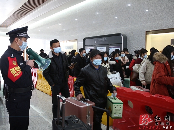 龙山县融媒体中心1月29日讯(记者 吴进阳 通讯员 王旭)1月28日,是春运第一天,受疫情影响,来龙山北站乘车外出的旅客减少,而外地返乡的旅客却明显增加。车站内,铁路民警、车站工作人员和志愿者各司其职,维护着车站的秩序。