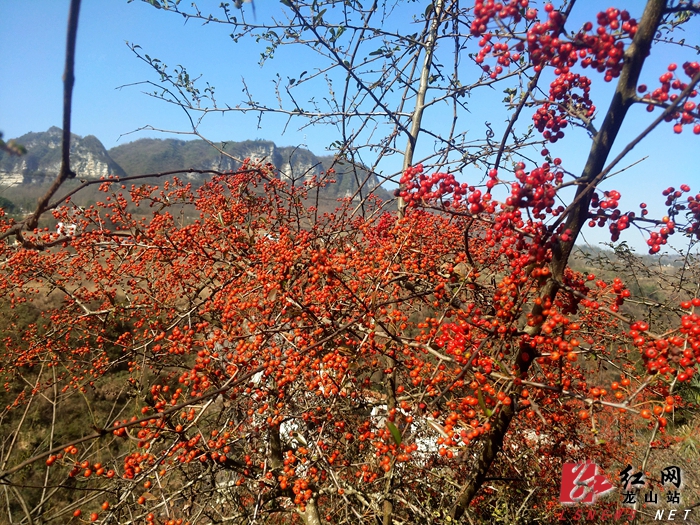 龙山县融媒体中心1月13日讯(记者 胡达胜)隆冬时节,龙山县洛塔地质公园,满山遍野的野生火棘果却成为冬日里的一道别样风景。