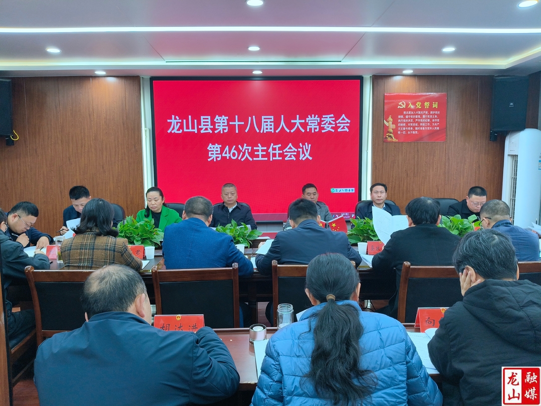 龙山县融媒体中心11月27日讯(记者 莫代银)11月27日,龙山县第十八届人大常委会召开第46次主任会议。县人大常委会主任黄勇主持会议,副主任叶明江、唐晓萍、余志国、梁海波、田世忠参加会议。