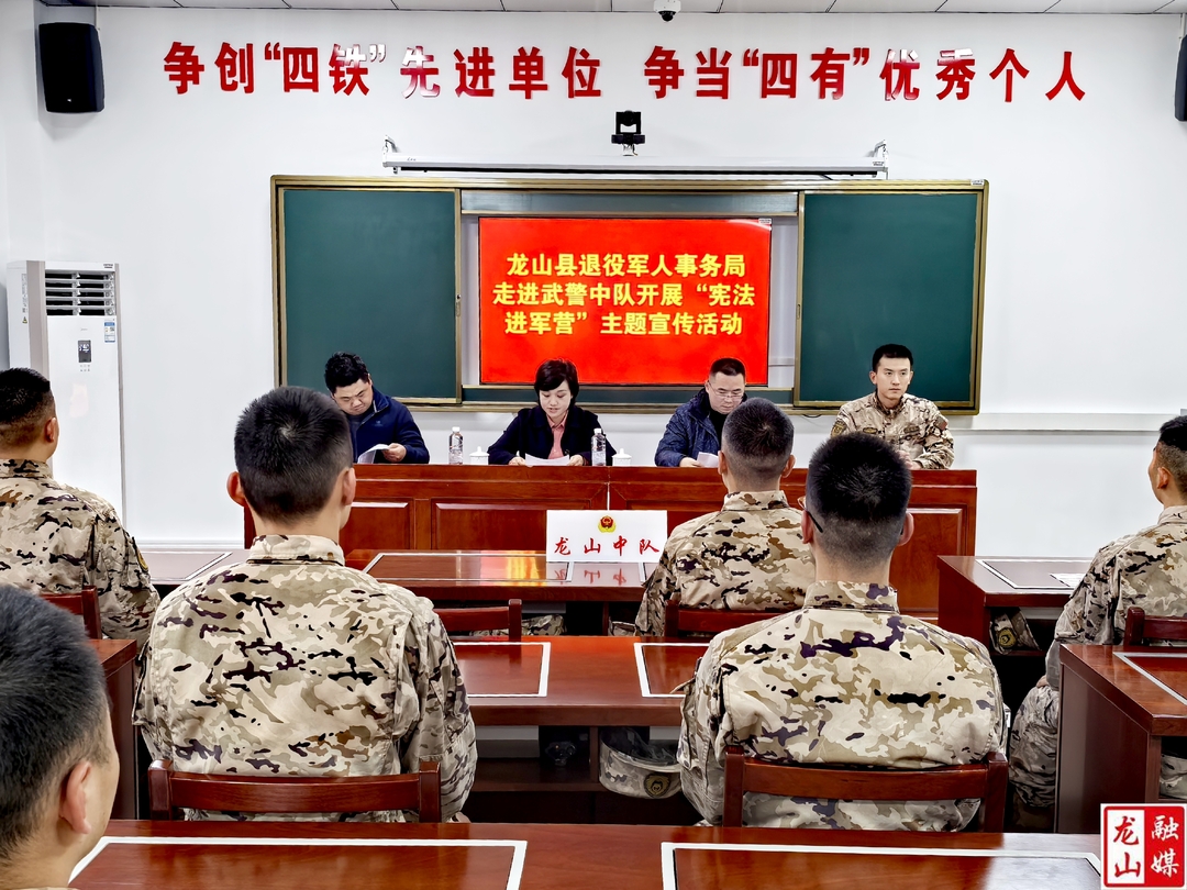 龙山县融媒体中心12月4日讯(通讯员 向梁 向祖勋)12月4日,县退役军人事务局在县武警中队开展“宪法进军营”宣传活动,为部队官兵送去一场“法治大餐”。