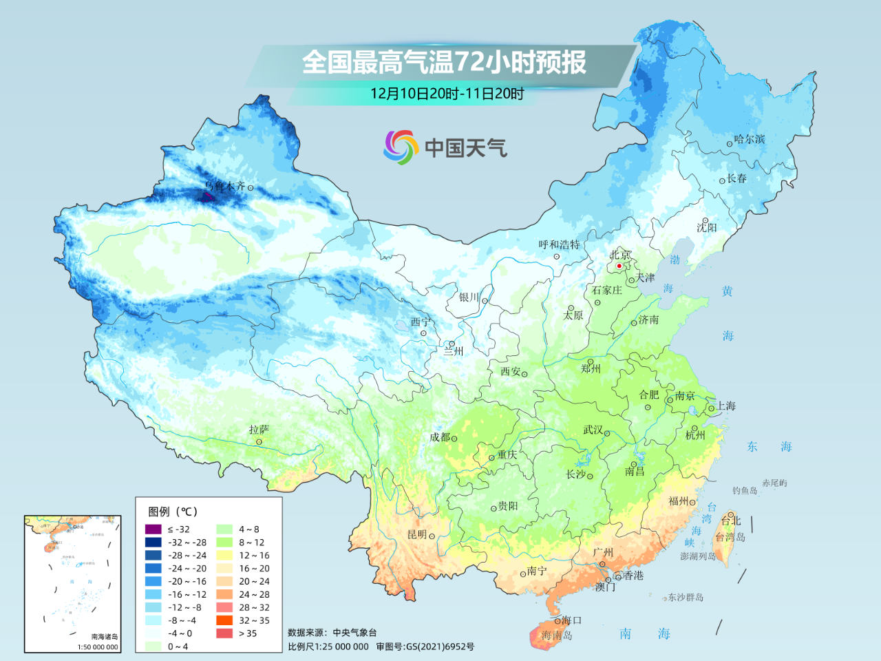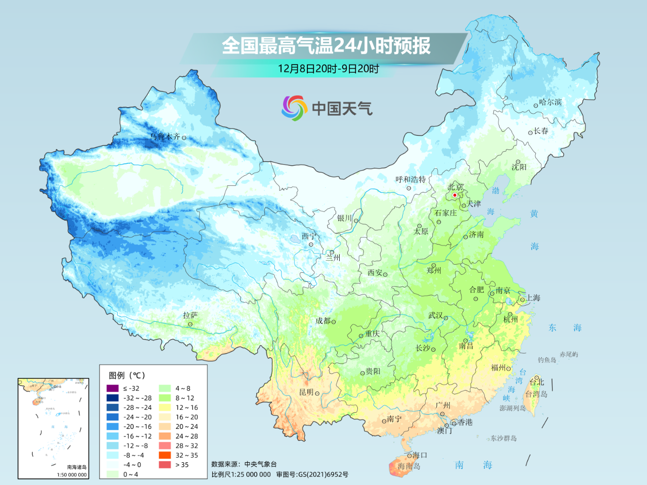 在北方,本周将会是“冷上加冷”。 西北地区东部等地最高气温将是今冬首次跌破0℃。兰州 10日最高气温可能是今冬首次达到0℃,之后还将连连下跌。哈尔滨 最高气温也会从零下10℃左右,一路跌至接近零下20℃,不愧是天寒地冻的“尔滨”!