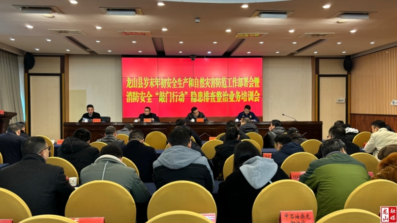 龙山县融媒体中心12月18日讯(记者 王秋月)12月18日,龙山县岁末年初安全生产和自然灾害防范工作部署会暨消防安全“敲门行动”隐患排查整治业务培训会召开。副县长、县公安局局长吴昱杰出席会议并讲话,县消防救援大队大队长伍斌参加。
