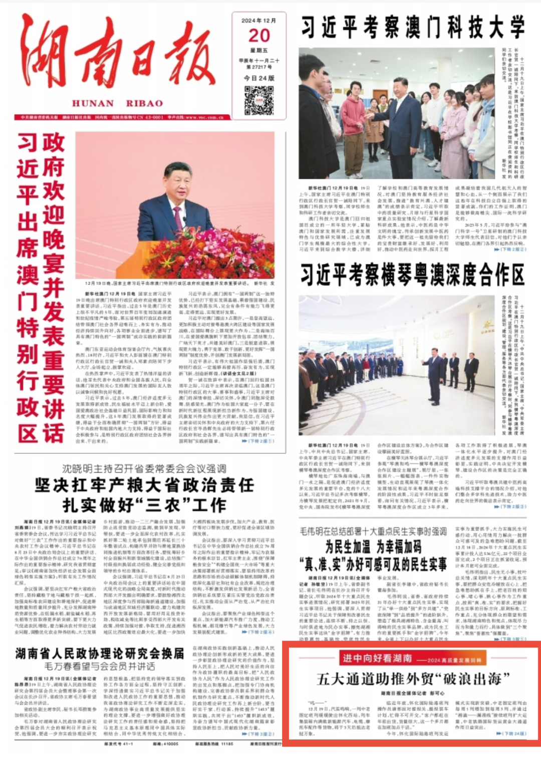 五大国际贸易通道“握指成拳”,内陆湖南实现“立体出海”。一条条畅达通道、一个个繁忙港口、一列列呼啸班列,助推外贸“破浪出海”,为湖南高水平对外开放发展注入强劲动能。