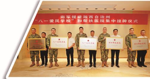 图④:海军援建湘西土家族苗族自治州“八一爱民学校”和帮扶医院集中挂牌仪式。周 刚摄