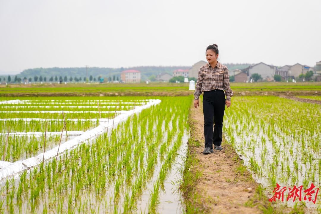 衡阳县台九村“85后”种粮大户朱霞带领合作社给周边散户提供水稻全程社会化服务,面积达10万亩。湖南日报全媒体记者 傅聪 摄