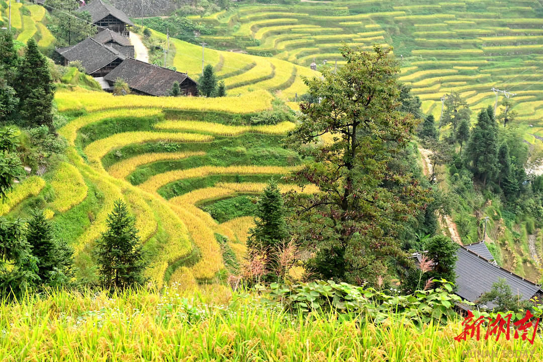 新化县水车镇紫鹊界梯田里的水稻陆续成熟。 贺上升 摄(湖南图片库)