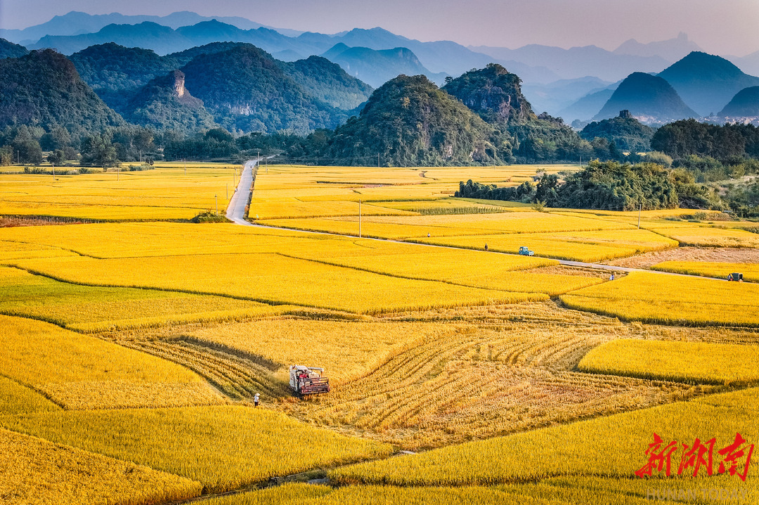 2024年10月10日,宁远县湾井镇的万亩水稻陆续成熟。 李文 摄(湖南图片库)