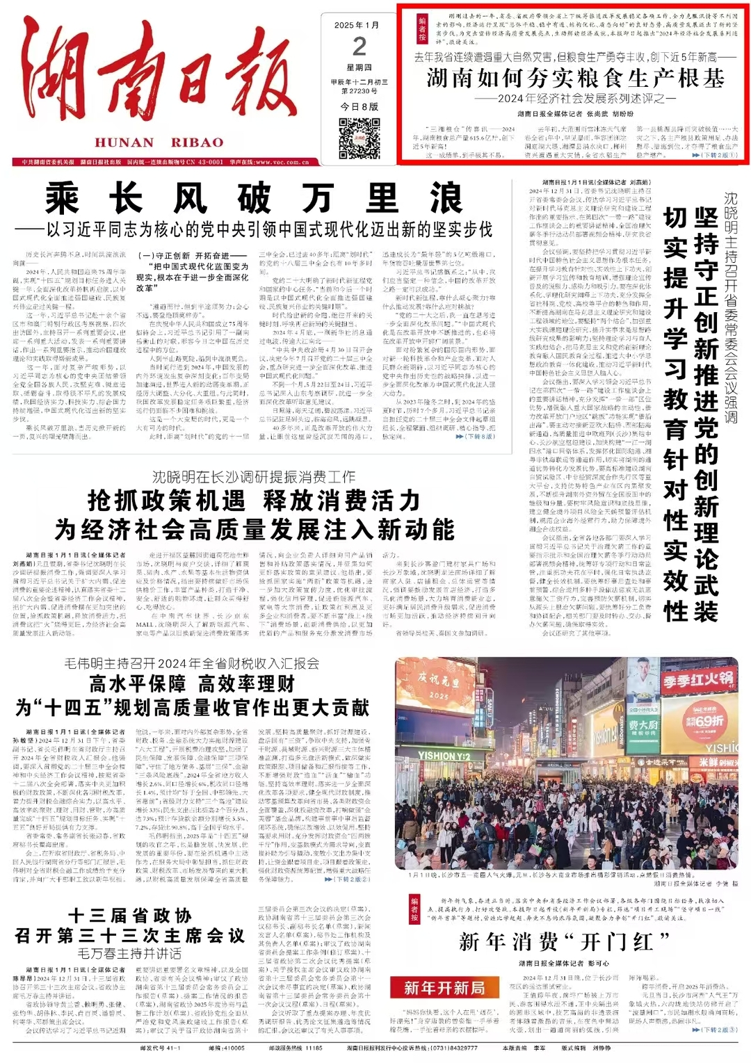 编者按: 刚刚过去的一年,省委、省政府带领全省上下统筹推进改革发展稳定各项工作,全力克服汛情等不利因素的影响,经济运行呈现“总体平稳、稳中有进、结构优化、质态向好”的良好态势,高质量发展迈出了新的坚实步伐。为突出宣传经济高质量发展亮点,生动解读经济成就,本报今起推出《2024年度经济社会发展系列述评》系列报道,敬请关注。