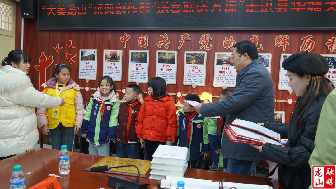 在华塘芙蓉学校会议室,该校负责人就学校享受长龙帮扶的有关情况和学校书法、艺术教育开展情况作了介绍,并表示将继续推进学校的艺术教育、感恩教育工作。现场还为华塘芙蓉学校赠送创作的书法艺术作品,为“长沙帮扶龙山三十周年青少年”书法展获奖学生颁奖,并赠送了长沙对口帮扶龙山志,县委办、县对口办、县委宣传部、县文联、县书法家协会、华塘芙蓉学校相关负责人为师生颁发了入展证书。