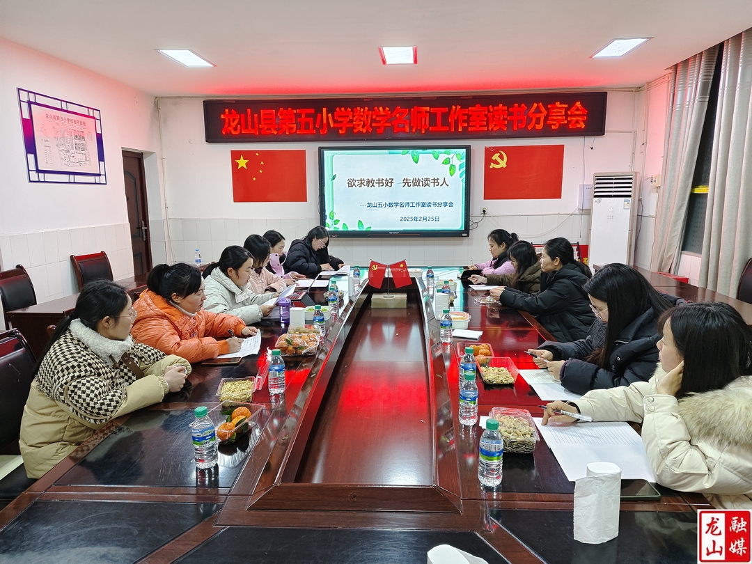 龙山县融媒体中心2月26日讯(通讯员  张晓庆 李洁)2月25日,第五小学数学名师工作室团队成员齐聚校第二会议室,开展了一场以“阅读赋能教学,书香浸润课堂”为主题的读书分享会。工作室14名团队成员和两名分管负责人参加了此次会议。