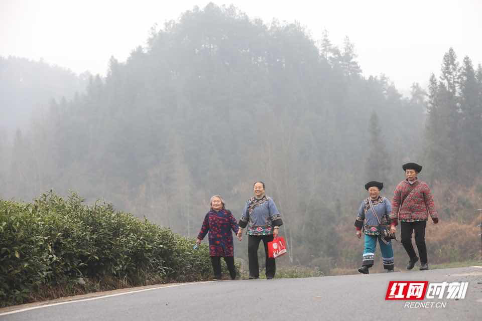 她告诉观潮君,项目启动3年后,做过一次统计,当时约有300多位留守儿童的父母因此返乡就业。“没有人对我说谢谢,但总有村民拿着满满一兜刚摘下的辣椒、茄子、黄瓜送到我家,这也是我们之间的心照不宣吧。”石佳笑着说。从免费培训到带薪培训,从技能培训到组建设计团队、开实体店、拓展电商渠道,从带动妇女就业到参加巴黎国际展、登上时装秀T台,石佳的苗绣事业像是从苗乡向外伸展的一条枝蔓。在深耕苗绣产业的过程中,石佳发现这个领域缺乏人才、前端设计不足、后端销售不畅等问题正日益显现。石佳常说自己是“守寨人”,正因为长期“守”在乡村,她看到,这些问题在乡村合作社和微小企业中普遍存在。2023年,当选全国人大代表的第一年,石佳便提出建议,要鼓励社会组织在省会城市建设离岸孵化中心,赋能乡村振兴。当年3月29日,湘西州首个离岸孵化中心在北京成立。这个由七绣坊与北京尚仄国际集团共同打造离岸孵化中心,为湘西苗绣推广打开了一扇新的大门。在离岸孵化中心成立的第二天,两家公司便带着共同开发的75件中式婚礼服,登上中国国际时装周的舞台。这次展示,促成了1700余万元的时装订单。从花垣东收费站下高速,沿着209国道、034县道行驶十几分钟,会进入村道,沿途是一片茶园,“七绣姑娘的茶山”几个大字十分显眼。返乡创业后不久,石佳发现,仅仅只有苗绣,并不能充分满足大家的就业需求,她必须找到更多的出路。2020年初,石佳开始流转土地种植黄金茶,到如今,茶园面积达到1806亩。石佳说,这里勤快的妇女,“忙时采茶,闲时绣花”,一年能赚五六万的收入。沿着乡村公路驶入茶园深处,一栋外体是砖木结构的房子很醒目,石佳正逐步将老基地的苗绣作品、茶叶生产线迁到这座新落成的七绣黄金茶展示中心。