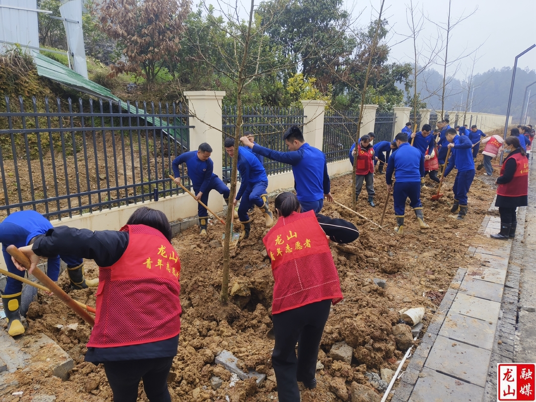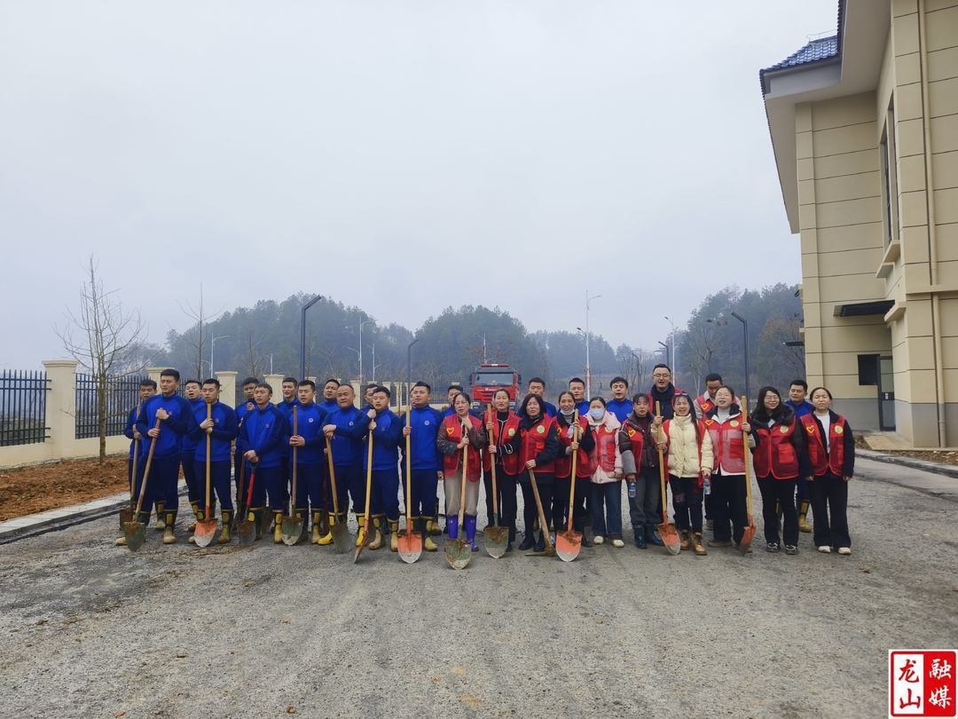 龙山县“志愿红”联合“火焰蓝”共同开展义务植树活动