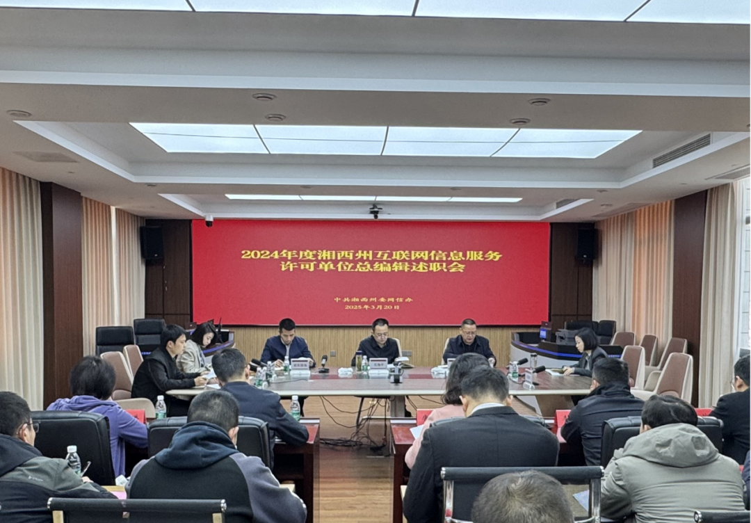3月20日上午,2024年度全州互联网新闻信息服务单位总编辑述职会议在湘西州委网信办召开。湘西网、湘西融媒以及各县市融媒体中心10家互联网新闻信息服务单位总编辑围绕2024年履职情况进行述职,州委网信办主任石海平逐一进行点评。各县市委网信办和州委网信办各科室负责人参加会议。