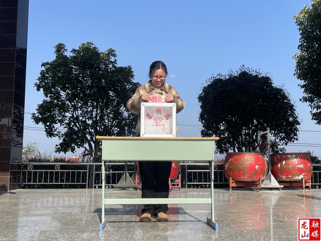 捐赠环节中,该校负责人率先走向捐款箱,带头捐出善款,以实际行动为全校师生树立榜样。教师代表紧随其后,将善款投入箱中,展现教育工作者的责任担当。学生代表们有序排队,将积攒的零用钱郑重投入捐款箱。