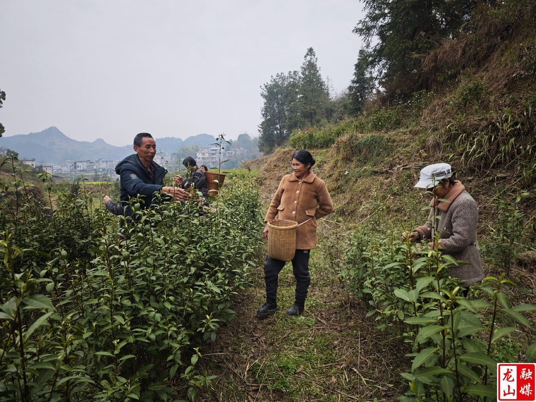龙山县融媒体中心3月25日讯(记者 刘润)时下气温回升,春茶进入采摘期。兴隆街道尖岩村的村民们,正抢抓晴好的天气,采摘春茶供应市场。