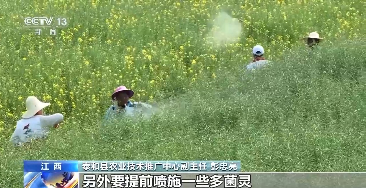 泰和县农业技术推广中心副主任 彭忠亮:一旦积水,油菜根系容易缺氧、腐烂,所以要及时做好清沟排水。另外,要提前喷施一些多菌灵,防止病害蔓延。