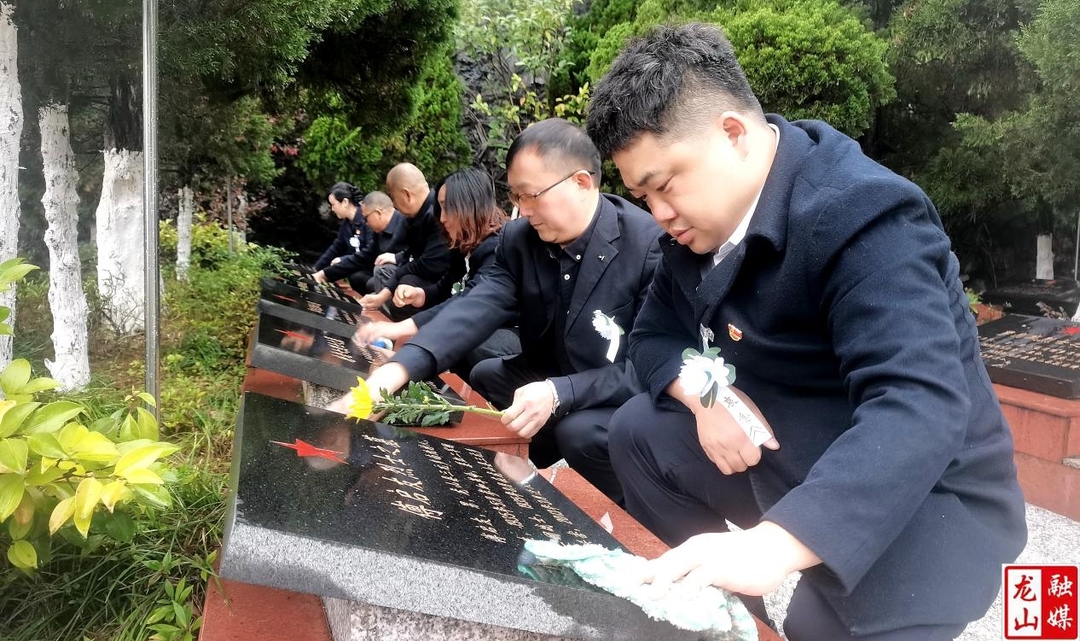在烈士墓区,大家手持抹布,擦拭墓碑,敬献鲜花。“当触摸到烈士墓碑上斑驳的刻痕,更懂得今天的幸福生活来之不易。”年轻党员说道。